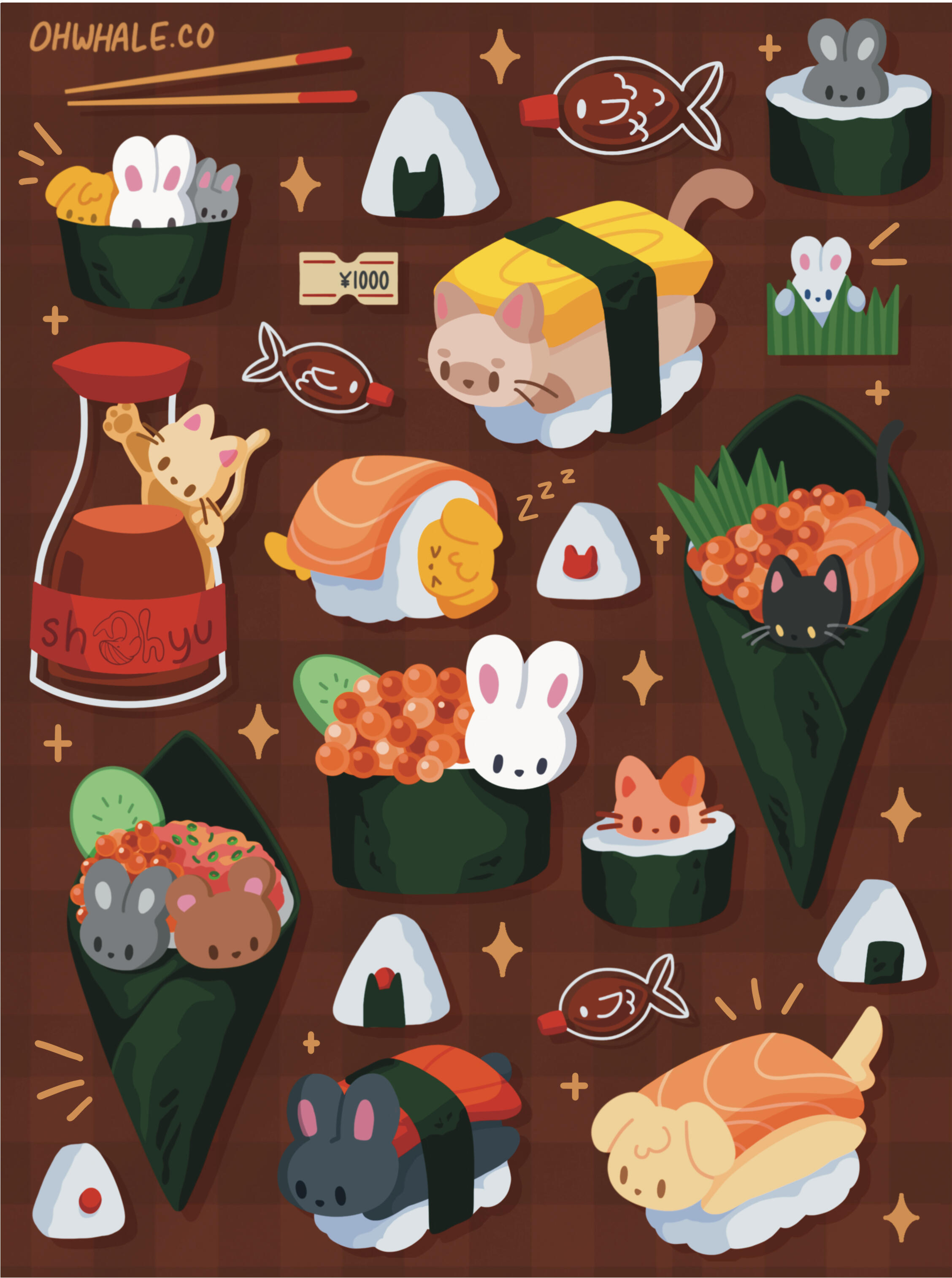 hello there! my name is Kai! i am a Japanese-American college student, artist, and the owner of ohwhale.co. my business is focused on kawaii merch inspired by Asian culture, cute ocean creatures, and unique K-Pop designs!here you will find several sections of my portfolio! best viewed on desktop.contact: [email protected] | ohwhaledotco on Etsy. | my instagram 𓆝 𓆟 𓆞